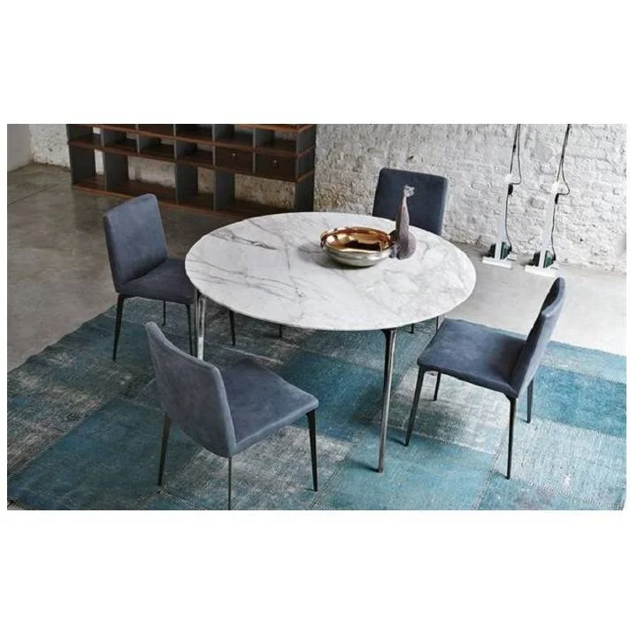 Liuto round table with a frame made from chrome-plated or painted die-cast aluminum, which can be up to 3 meters in length, requiring the support of only four legs (without inserts).
