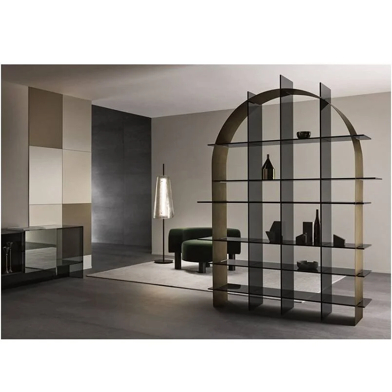 Freestanding bookcase with extra clear or smoked glass structure.