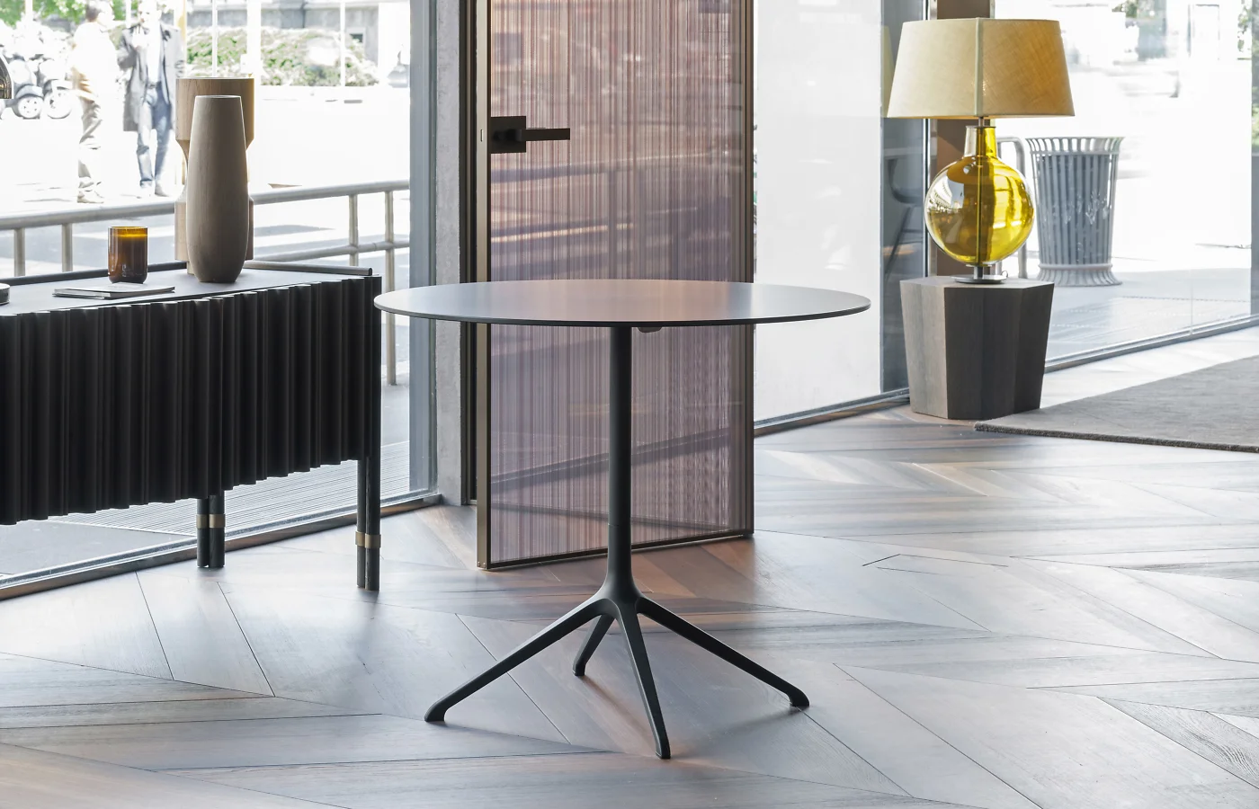 The Elephant series tables recall the homonymous collection of armchairs, born from an evolution of the trestle base of the swivel chair.